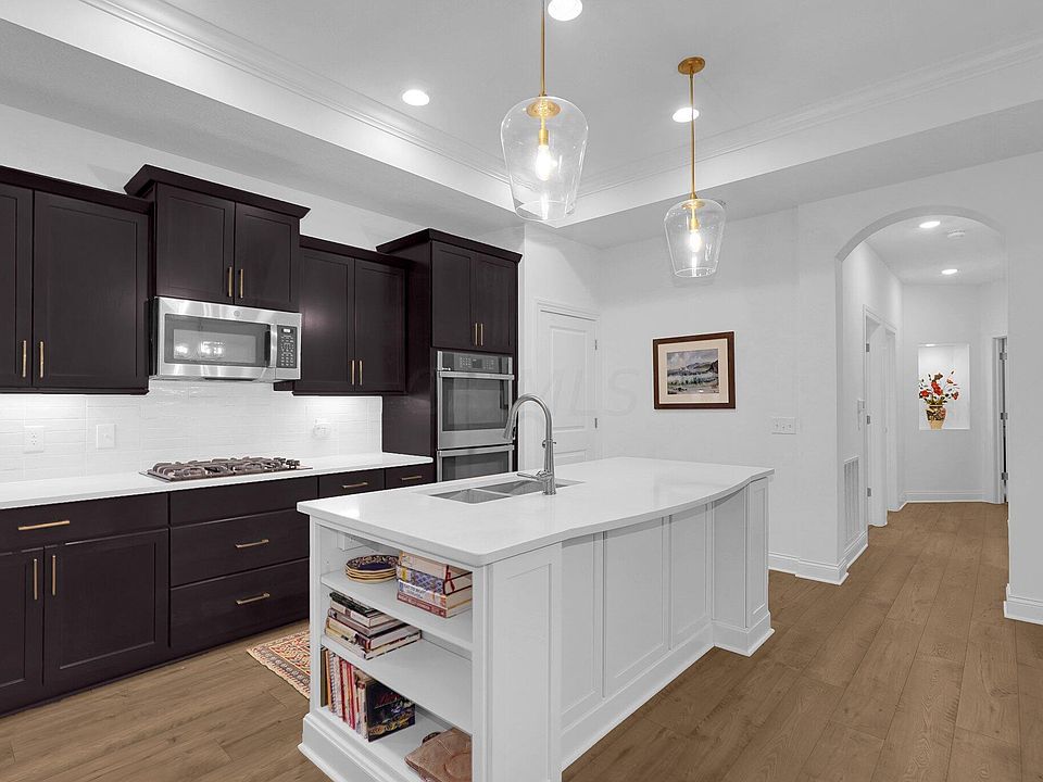 Luxurious one-floor living walkable to downtown Grove City, burgeoning with amenities! With HECM/ FHA financing, NEVER A MONTHLY PAYMENT. Numerous windows coupled with high ceilings enhance the Open Feel though-out this Single Family Home. Premier Kitchen with extensive Quartzite countertops and trendy finishes including ''Champaign'' fixtures, double oven, stainless appliances and LVP ''hardwood look'' throughout. Two full baths you will value including Double Sinks and zero-entry L-shower. Excellent closet space. Primary Bedroom is spacious and extends into bright Sunroom for reading, office or hobby space. Both bedrooms are carpeted and overlook sizable patio with raised beds and plumbed gas grill. Plus covered front porch.