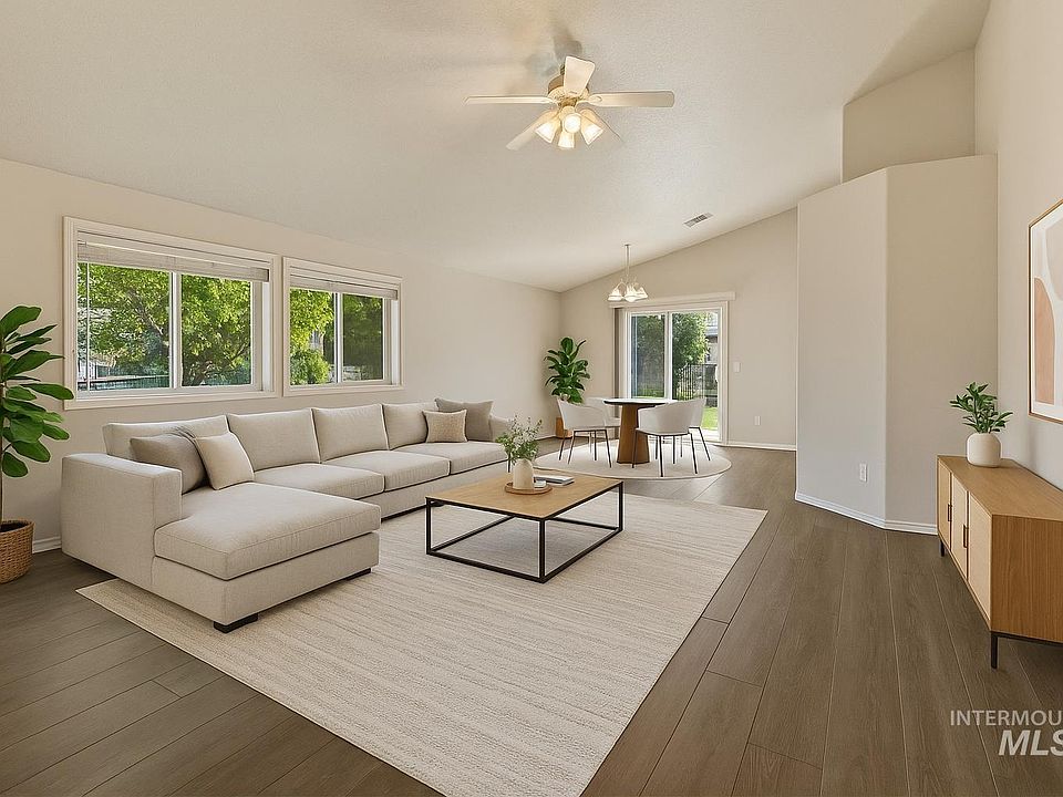 New price. New opportunity. Tucked at the curve of a quiet cul-de-sac, this corner-lot gem rests where calm streets meet vibrant living. Mornings begin with sunlight spilling through vaulted ceilings and wide windows, filling the home with warmth and possibility. The kitchen, bright and welcoming, is the heart of the home complete with a cheerful garden window, generous cabinetry, and a walk-in pantry ready for every favorite recipe. Beyond your doorstep, the neighborhood opens to the best of Meridian life. Stroll to the 58-acre Kleiner Park, where playgrounds, pickleball courts, open fields, and the bandshell amphitheater set the scene for easy weekends and evening walks. A few minutes farther, The Village at Meridian offers boutique shops, dining patios, and entertainment beneath twinkling lights an effortless blend of convenience and charm. When the day winds down, retreat to the peaceful primary suite with its deep soaking tub, dual vanities, and spacious walk-in closet, a sanctuary made for slowing down. Outside, the flexible yard is ready for your next chapter: garden mornings, backyard gatherings, or quiet moments under Idaho’s wide skies. Here, every detail feels intentional. Every space tells a story. And every day begins just a little brighter than the one before. (Certain photos, virtually staged)