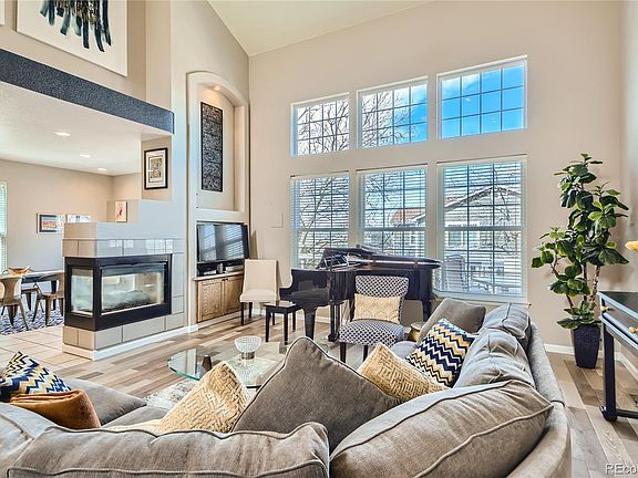 Welcome to this delightful two-story, Writer home with a main level primary suite situated in an established Highlands Ranch neighborhood. Vaulted ceilings flood the open floor plan with natural light. The updated kitchen features granite counters, stainless steel appliances, including a gas range, and ample cabinetry making it a chef's delight. Adjacent to the kitchen, the dining nook offers access to the expansive deck, where you can enjoy the tranquil view of the backyard. A three-sided fireplace serves as the centerpiece of the home, providing warmth and ambiance. The great room, overlooking the deck, offers a cozy spot to entertain guests or watch a movie. For formal dining, a private room at the front of the house is perfect. Or, for the less formal, this room would make a great office or music room. The main floor primary suite is a true retreat with a private five-piece bath that has been tastefully updated and features a soaking tub and a walk-in closet. A half bath and laundry room complete this level. Upstairs, two bedrooms share a full bath with dual sinks and a loft area overlooking the great room works well as a homework hub or reading nook. The finished walk-out basement is a true gem, featuring a huge family room with a kitchenette equipped with all the appliances (except a stove), two additional bedrooms, an updated 3/4 bath, and two sliders that open to the backyard patio. While this level could potentially provide the opportunity for income on its own, it provides comfortable guest space as it is! The private yard and perennials that line the front walk & porch are all maintained by a sprinkler system. The location is just blocks from the highly rated elementary school, Cougar Run, and five minutes to the closest rec center. This is one of four excellent rec centers in the area provided by the Highlands Ranch Community Association! Whole Foods, other grocery stores, great restaurants, and easy highway access make this location highly sought after.