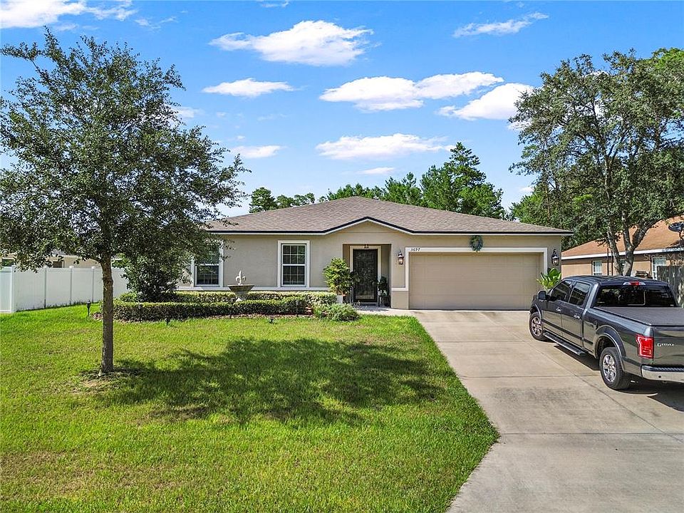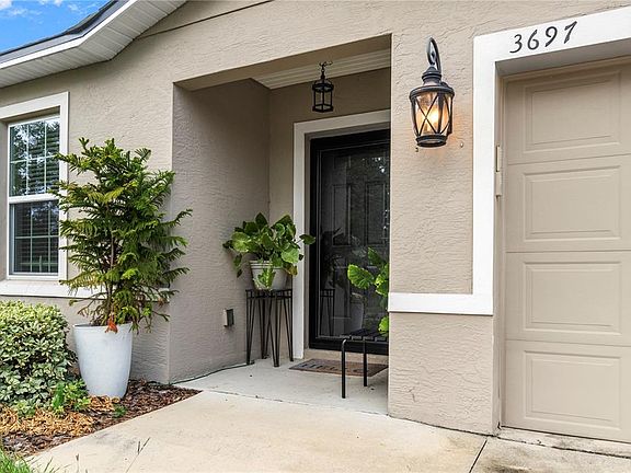 Welcome to 3697 SW 128th Place, a stunning residence nestled in the heart of beautiful Ocala, Florida. Built in 2020, this home boasts a modern and open floor plan, perfect for both relaxation and entertaining. The interior is beautifully decorated, featuring elegant granite countertops that add a touch of luxury to the space. The owner has thoughtfully enhanced the outdoor living experience with a remote-controlled retractable awning on the back porch, complete with lighting, creating an ideal setting for gatherings and relaxation. The property is nicely landscaped, offering a serene and inviting atmosphere. The primary suite is a true retreat, featuring a spa-like bathroom that promises relaxation and comfort. The wonderful split floor plan ensures privacy and ample space for everyone in the household. Additionally, the home includes a spacious two-car garage equipped with built-in storage, providing convenience and organization. This property is a perfect blend of style, functionality, and comfort, ready to welcome its new owners.