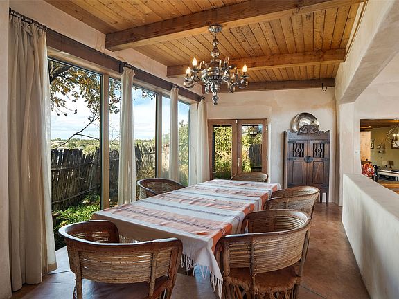Multiple kiva fireplacesWalled courtyard patioSoaring spacesSpacious primary suiteExpansive double-adobe constructionClassic viga beam ceilingsDramatic light