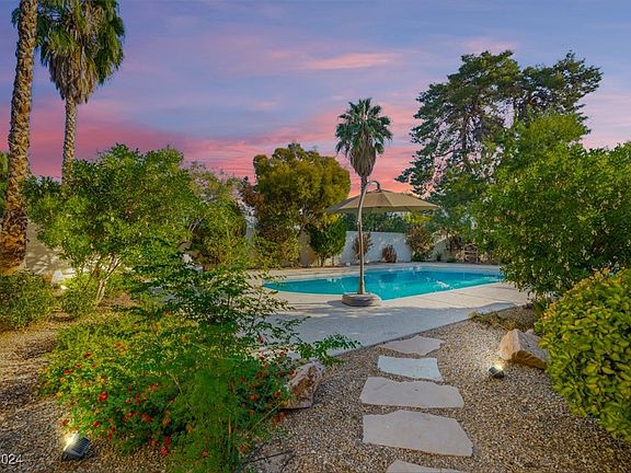 Looking for a vintage Vegas Charmer on 1/3 acre lot? This is the house that feels like a home the moment you enter. Some outstanding features include white oak plank wood floors, lots of windows, shutters, crown moulding and a sprawling floorplan w/5 bedrooms. The sunken-in formal living room is light-filled and welcoming. Family room has beautiful brick gas AND wood burning fireplace. Family room opens to kitchen that features granite countertops, double oven, new reverse osmosis (filtered drinking water), new dishwasher, upgraded white cabinets. The bedrooms are a generous size - lots of room! You'll absolutely fall in love with this spectacular backyard oasis. This pool is oversized and gorgeous. Mature landscaping along with patio space and real green grass, you'll never want to leave home. Fabulous for entertaining and/or relaxing. RV Parking with gate, the 2 car garage is oversized and there is a usable attic space with stairs. Lots of storage and washer and dryer stay.
