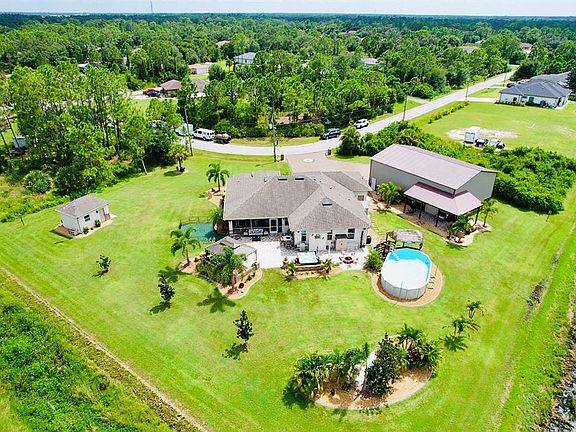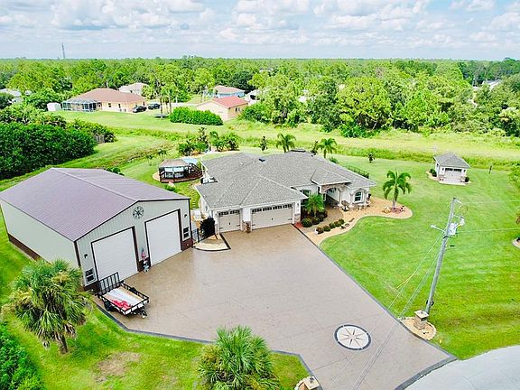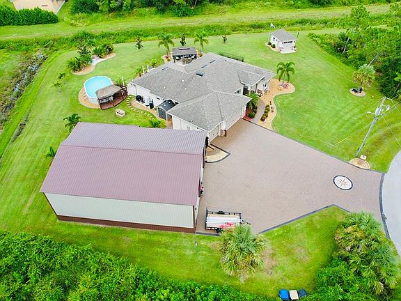 Meticulously Maintained Home and Yard on .79 Acres!!! These homeowners did an amazing job at taking care of this piece of paradise. Starting with the exterior... There is a 36x50 Metal Outbuilding with a Loft. Able to contain a Class A or Fifth Wheel RV along with other vehicles/boats! Doors on building are 14ft high and 12ft wide!! 3 Car Garage doors to the main house are 8ft. A/C has the blue light system/7 years new, and there is a a wall unit in Master bedroom thats 1 yr. old for those who like it really cold! Whole house hurricane shutters! The land is high and dry sitting at 24ft above flood level. Whole house Generac Generator is 22KW! Gorgeous Park like setting! Shed for storage on the North side of property! 8 Zone Sprinkler System, approx. 80 heads. Talk about a calming atmosphere while relaxing in the Heated Swimming Pool or Spa! Outdoor heated Shower! There is also an Outdoor Kitchen that makes it great for Entertaining. Owners are leaving the Fire Table & Stools outside of the Lanai! Many areas to sit outside under the metal building or in the Tiki Bar next to the Pool!! Such a great atmosphere! Now.... the Interior, Upon entering, you will notice the nicely landscaped entry way leading up to the front doors. Tile throughout the main rooms of house, formal dining room, NEW CARPET in all bedrooms! Granite Kitchen and Bathrooms! Appliances that are 7 years old- dishwasher & refrigerator, microwave & oven are 2, washer & dryer are 3 years. Living room and family room have Sliders to the lanai!