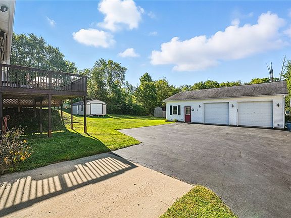 There’s room for all of your toys and a place for you too! In addition to the attached two-car garage, you’ll find a massive 30x60 finished and heated outbuilding with tall ceilings, 220 outlets, running water, an area with knotted pine accents and more! Whether you’re a car enthusiast, woodworker, mechanic or collector, this is a dream space for your pasttimes to come alive! When you aren’t living and breathing your hobbies, this 1999 constructed ranch home is ready to support you with move-in ready appeal and surprising space. Durable, wood-look flooring adds warmth without worry, setting the stage for everyday comfort. With light maple cabinetry, a center island, and contemporary lighting, the kitchen strikes that balance between stylish and practical. The owner’s suite offers retreat and privacy, tucked on its own side of the home. A fresh, modern bath and walk-in closet keep you refreshed and organized.