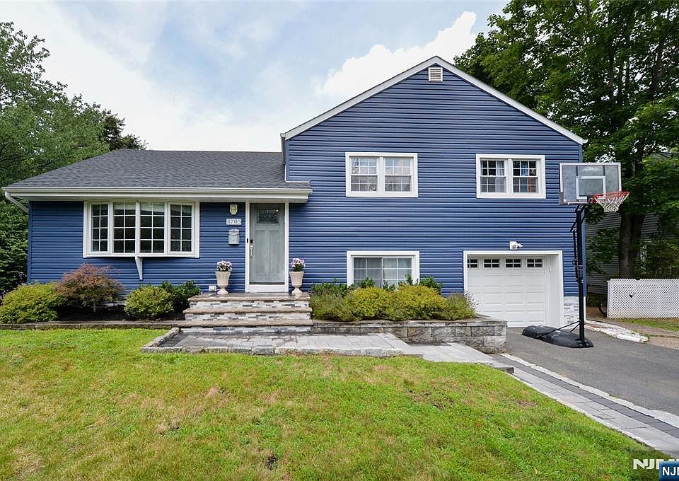 Discover this beautifully updated 4-bedroom, 3-bathroom home nestled in one of Fair Lawn's most desirable locations. Brimming with curb appeal, its striking blue exterior sets the stage for the stylish and spacious interior that awaits. Step inside to an inviting open floor plan that seamlessly blends comfort and modern design. The expansive living room flows effortlessly into the contemporary eat-in kitchen, featuring pristine white cabinetry, a wraparound island with ample bar seating, and a charming coffee nook. The adjoining oversized dining area opens directly to the deck, overlooking the private backyard oasis. The ground level is perfect for entertaining and everyday living, offering a bright family room, a full bathroom, and an ample bedroom with sliding glass doors leading to the patio and sparkling pool, ideal for summer gatherings. The fully finished basement extends the living space with a versatile rec room or home gym, a dedicated bonus room perfect for a private office, and a convenient laundry area.Upstairs, the second floor showcases two additional comfortable bedrooms and a modern full bathroom, while the spacious primary suite features its own ensuite bath, providing a peaceful retreat at day's end. Perfectly situated near top-rated schools, parks, shopping, dining, and NYC transportation, this exceptional home effortlessly blends location, luxury, and lifestyle.