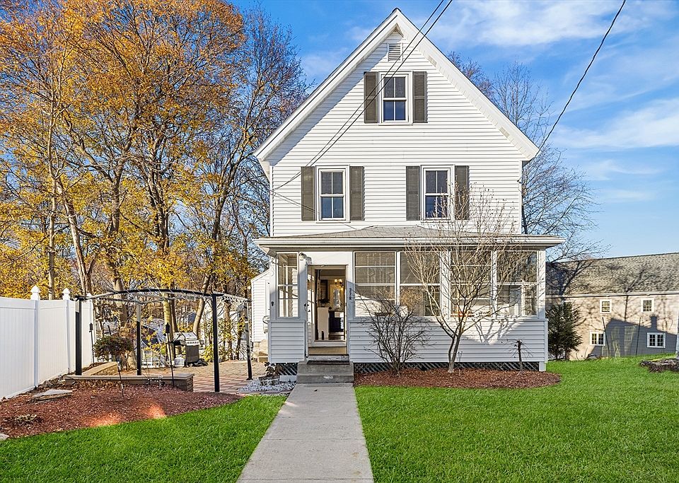A sun filled New England colonial style home offering 3 bedrooms, 1.5 baths & a private outdoor oasis a short distance from Boston. Architectural detail such as high ceiilings, window moldings & french doors found only in a home of this era. Main level welcomes you with a charming 3 season porch. A modern kitchen with stone counters & stainless steel appliances. Open concept first floor with nice flow including a half bath. The 2nd floor is adorned with 2 corner bedrooms, a very large full bath including soaking tub & separate shower. Extra bonus is walk up attic with additional bedroom & storage. Amenities are gas heating & cooking, original wide plank hardwood floors, patio & off street parking for 4 cars. Steps to downtown, bus & super close to I-95! Absolutely move in ready.