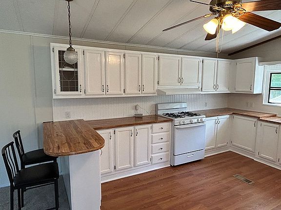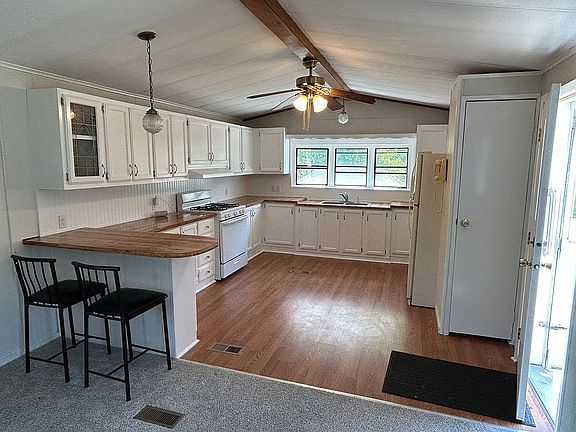 2 bedrooms both with closet space. Large double sink bathroom with vanity sitting area (all new). Shower/tub combo. New floors throughout entire. Built in AC and ceiling fans. Large Kitchen/Dining Combo flows into living room. Kitchen has newer gas stove. Situated in an adult community 55 and older.
