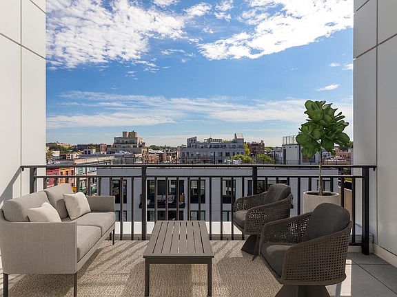 Residents enjoy boutique amenities such as a striking lobby with video intercom and keyed entry access, an elevator, a furnished roof deck with panoramic Manhattan views, bike storage, a laundry room, and a pet-friendly atmosphere.