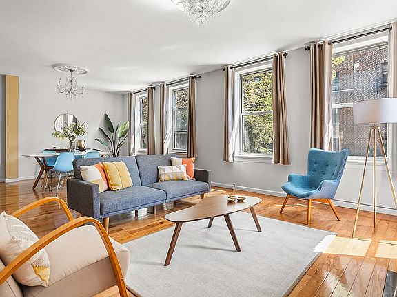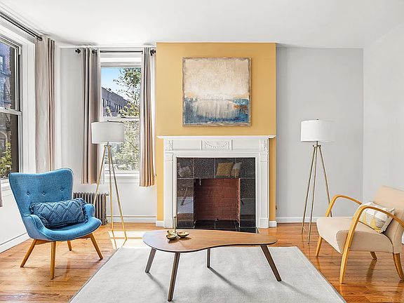 Spacious and stylish, this well-designed, two-bedroom/one bathroom co-op in Laburnum Court has it all! This landmarked building blends modern convenience with pre-war elegance and includes a modern new elevator, a common garden, only two units per floor and every apartment has a fireplace! Five oversized windows fill the spacious open-concept living room/dining room with light from two directions. You'll appreciate living and entertaining in this Great Room with its stunning fireplace, 9' ceilings and beautiful hardwood floors that replicate the originals.