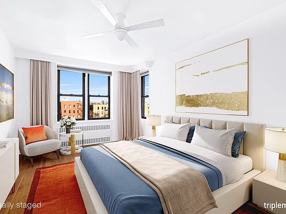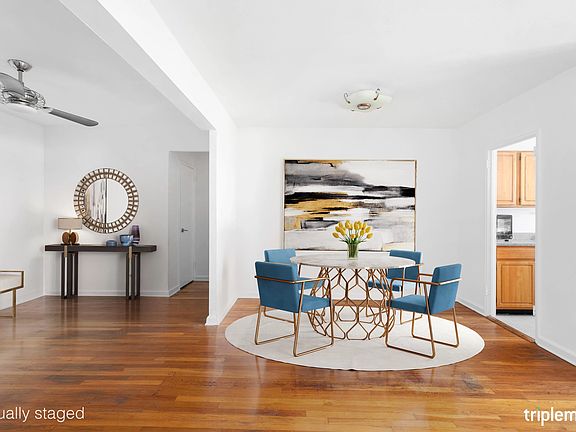 Welcome home to The Monterey! This warm, vast apartment with extra large living space, dining nook, and versatile foyer (think office space, reading area, at-home yoga studio) is the ideal place to entertain, work, relax and breathe. Located on the top floor, the space is open, with western exposure offering sunlight well into the afternoon. The views of Manhattan, specifically the Empire State Building and One World Trade, are an added bonus. Unlike most New York City homes, this space features five large closets solving all of your storage woes. The bedroom is made for a king-sized bed, but can also accommodate a desk, a fitness bike or any standard bedroom furniture you may need. The windowed bathroom features a full sized tub, extra storage, and the charm of a unique property. The galley kitchen, located off of the dining area, has ample counter space and plenty of opportunities for cooking and storage. The building features a shared courtyard - ideal for entertaining or a peaceful moment for yourself. This cooperative is in immaculate shape. The lobby, hallways and elevator are in mint condition, kept up by a live-in super. Additionally, there is an upgraded intercom system and a laundry room on the first floor. Extra storage is available. A post-war cooperative, The Monterey is located in historic Jackson Heights, just 23 minutes from Midtown Manhattan, 10 minutes from LaGuardia Airport, and a fast subway ride on the 7 to Flushing Meadows. Restaurants, bars, cafes, grocery stores, and more are all conveniently located, not to mention the 3-minute walk to the 7 train.