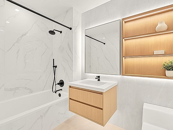 Inside each residence, thoughtful design meets refined aesthetics. Triple-pane windows ensure peace and quiet, while high ceilings create an open, loft-like feel. The kitchens strike the perfect balance between function and style, featuring Bosch 800 Series appliances, quartz countertops, and sleek matte-black fixtures.