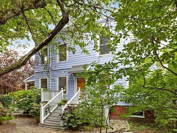 Back on market due to change in buyer circumstances. Don't miss an opportunity to update this gem of a single family oasis in the city! Tucked away in a tranquil setting on a wooded lot between Inman Square and Union Square, this special home offers the ultimate in privacy and city living. Lovingly lived in and cared for by the same family for 25 years. A nice flow to the floor plan offers a bright eat-in kitchen, living room, and half bath on the first level. Two porches off of the kitchen and living room are great places to unwind and absorb the peacefulness of the fenced in backyard, with its four mature trees and native plant and pollinator gardens. The second level offers two bedrooms and a spacious spa-like bathroom with a separate shower and large soaking tub. High ceilings and wide-pine floors throughout. The icing on the cake is seller-owned solar hot water panels. This property is truly a hidden gem in one of the most ideal Somerville/Cambridge locations. Property sold as is.