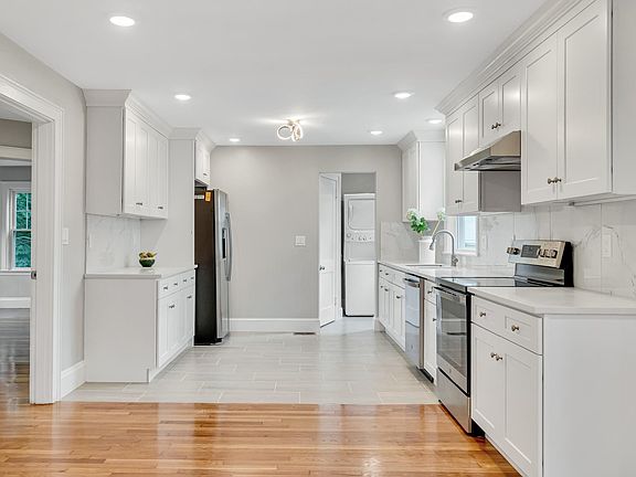 Beautiful, newly renovated with brand new electrical, HVAC gas heating and central cooling, In-unit washer & dryer, new windows, open concept new kitchen and bath equipped with desirable finishes, freshly painting, recessed lightings and refinished hardwood floors throughout! This spacious 3 beds/2 full baths first floor unit is sunny and spacious. Features separate entrance, high ceilings, rich woodwork & paneling, oversized foyer, spacious open kitchen with all delightful quartz countertops, tiled backsplashes, new appliances, porcelain tile flooring and tons of cabinets! Master ensuite with its new full bath and another full bath all with serene tiles surround. Large storage room in basement. Premiere location in a desirable neighborhood of Belmont. Close to public transportation and Cambridge line. Immediate occupancy! Pet can be negotiated! Rent includes landscaping and water. Tenants to pay all utilities