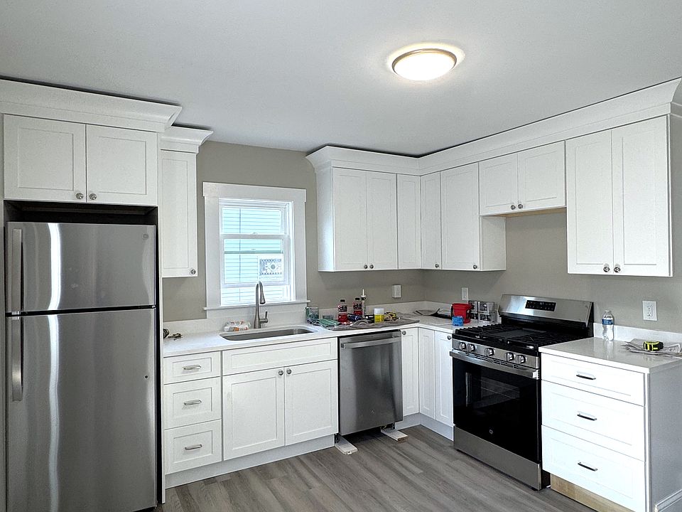 -Brand New Kitchen has Plenty of Cabinets & Granite Countertops, Stainless Steel Dishwasher, Gas Stove, & Refrigerator. Plenty of Room for a Table Set.