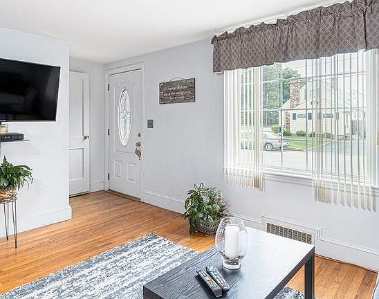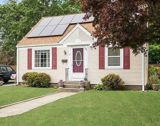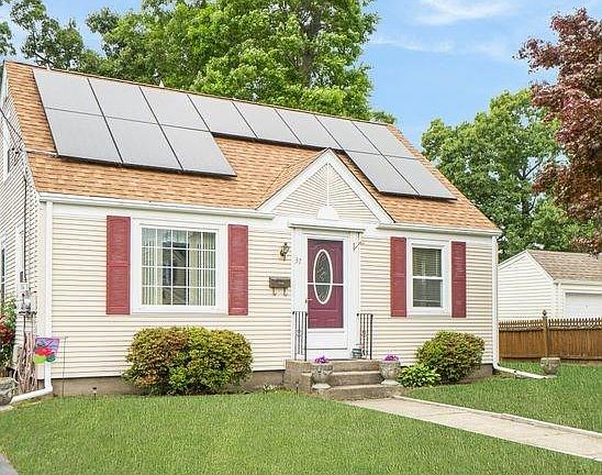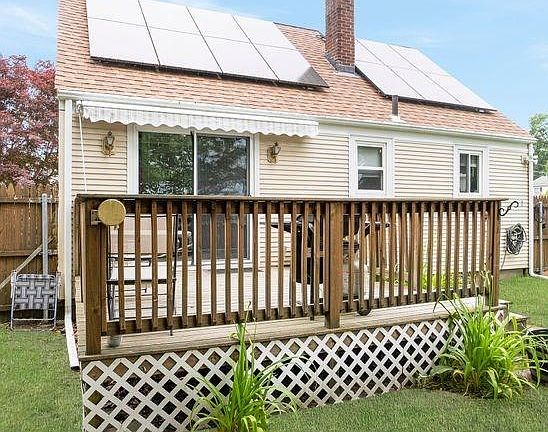 Cute as a button Cape Cod style home located close to highways and shopping! This homes floor plan has a first floor bed and 2 beds up, a newer bathroom, hardwood floors. Newer windows and roof, all vinyl sided. Nicely landscaped lot, large fenced in back yard, deck with retractable awning, above ground pool and shed! AND it is economical with it's solar panels. This is move in ready and waiting for it's new owner(s)!