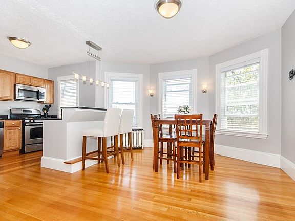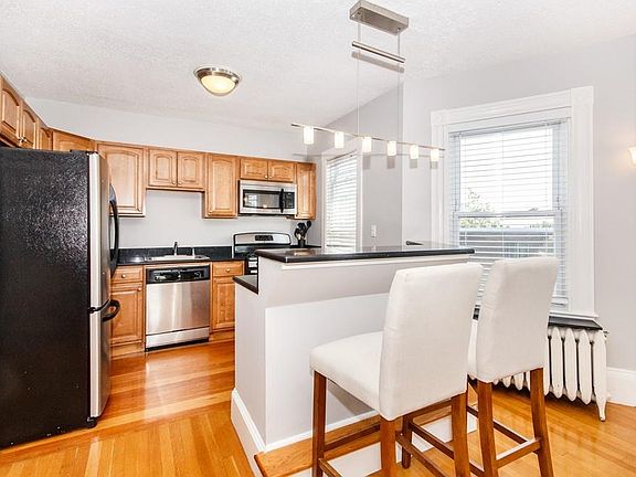 This sophisticated hilltop condo offers beautiful views from every room, modern finishes, classic detail, and a fantastic floor plan that can easily offer a spacious 3rd bedroom. The open kitchen features granite countertops, stainless steel appliances, a chic lighting fixture, and a great breakfast bar where you can sip your coffee while admiring the Boston Skyline. The dining area is spacious enough for a big gathering and offers an original built-in china cabinet. The living area is absolutely sun-drenched and offers bench seating, perfect for curling up with a good book. The working fireplace, dentil moldings, built-ins, and huge private deck add serious charm factor. Both king sized bedrooms are outfitted w/ storage units that can convey. Private laundry and storage are in the basement. Located in Malden's West End, this special home is just .5 miles both Malden Center Station, shopping, and Fellsmere Park, a perfect place for outdoor adventures along the scenic lakefront.
