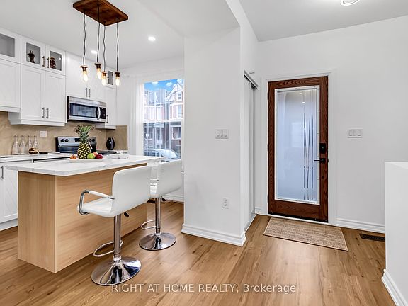 Brick homeOpen conceptTiled focal media wallAbundant natural lightBrand new modern kitchenQuartz counterSoft-close doors and drawers
