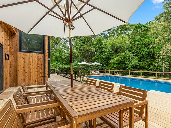 The pool deck will be fully replaced with new boards & there will be minor painting improvements made to the exterior. Project completion and new photography expected before June 2025. Welcome to your quintessential Hamptons escapean inviting, sun-drenched sanctuary nestled in the heart of Hampton Bays. Located on a quiet street just moments from charming local shops, acclaimed restaurants, pristine beaches, and vibrant art galleries, this beautiful four-bedroom, three-bathroom home is the perfect balance of tranquility and convenience. Ideal for families, friends, or anyone seeking a serene retreat, this thoughtfully designed property sleeps up to seven guests and offers a refined, yet comfortable experience.As you arrive at this charming Hamptons-style home, you're immediately greeted by its warm curb appeal and spacious, manicured grounds. Step into your own private oasis where outdoor living is celebrated to the fullest. The centerpiece is the fenced-in pool, surrounded by an expansive sun deck with plush lounge chairs and stylish sitting areasperfect for sipping cocktails under the sun or enjoying a quiet morning coffee in the shade. The secluded backyard is wrapped in lush greenery, offering complete privacy and a sense of peaceful seclusion. An al fresco dining table seats your group comfortably under the stars, while the gas BBQ grill invites you to enjoy summer meals with ease. Whether you're entertaining friends or simply unwinding after a day at the beach, this outdoor haven was designed for lingering moments and luxurious relaxation. With ample free parking, you and your guests will feel welcome from the moment you arrive.Step inside and feel instantly at home. This property boasts a bright and airy open floor plan with carefully curated interiors that blend coastal charm with understated elegance. The formal living room features a cozy chaise sectional, large TV, and a beautiful fireplace that anchors the space, creating a stylish yet laid-back ambiance. Floor-to-ceiling windows and double-height ceilings flood the room with natural light, while sliding glass doors lead directly to the deck and pool, offering an effortless flow between indoor and outdoor living.Adjacent to the living area is the elegant dining room, ideal for hosting dinner parties or intimate meals. The kitchen is fully equipped with modern appliances and all the essentials you need to prepare everything from gourmet feasts to easy brunches. A coffee maker, premium cookware, and thoughtful touches are provided for your convenience. The space also includes a dedicated home office, high-speed WiFi, central air conditioning, and a washer/dryereverything you need for a seamless extended stay or a productive work-from-home escape.The home's three spacious bedrooms are tastefully appointed with fresh linens, luxe bedding, and soft, coastal hues. The primary suite, located on the main floor, is a serene sanctuary featuring a plush king bed, ample storage, and sliding glass doors that open directly onto a secluded section of the sun deck. Imagine waking up and stepping straight out to the pool with the morning light filtering through the trees. The ensuite bathroom is a spa-like retreat complete with a large soaking tub. Upstairs, you'll find two additional bedroomseach with a king or queen bedthat share a private hall bathroom, perfect for families or groups traveling together. A third full bathroom on the first floor offers added convenience and privacy for guests. There is also an office with a sleep sofa available for additional sleeping space if needed.Beyond the home, the best of Hampton Bays is just a stone's throw away. Spend the day exploring Ponquogue Beach, Tiana Beach, or Meschutt Beach, each offering a unique experience of the Atlantic and Peconic Bay. Stroll through downtown Hampton Bays, where you'll discover local boutiques, galleries, and cafes, or treat yourself to waterfront dining at RUMBA, Cowfish, or Edgewater Restaurant. Enjoy fresh seafood at Canal Cafe or sip cocktails while the sun sets over the marina. For nature lovers, nearby parks and trails offer opportunities for kayaking, paddleboarding, and scenic bike rides. With Southampton Village and the rest of the Hamptons just a short drive away, this location offers both ease and access to the region's most celebrated destinations.