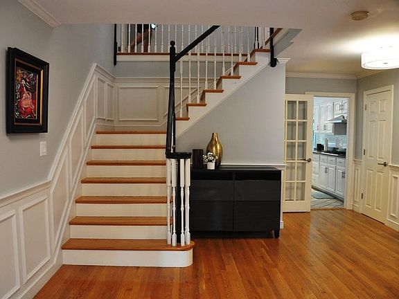Beautiful 5 bedroom home offers all the right space in all the right places! First floor has sunken living room open to dining room. Paneled library sits privately across from formal rooms. Fresh white eat-in chef's kitchen with granite and stainless appliances adjacent to beamed family room overlooking level landscaped backyard. First floor 5th bedroom with en suite bath is perfect for au pair or guests. Second floor offers 4 family bedrooms including master suite with oversized royal dressing room/closet area. Second floor laundry and generous sized family bedrooms including suite with walk in closet and en suite bath. Finished lower level offers additional 1200+/- square feet plus good sized storage. Brand new roof, fresh modern decor. All this in a popular neighborhood setting. This is the home you have been waiting for!