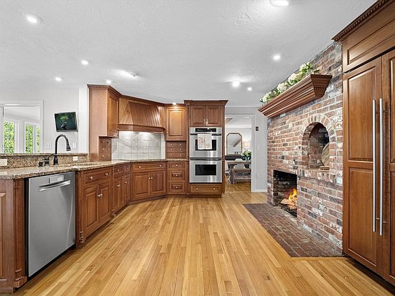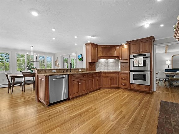 Charming and well updated Ed Waters colonial, across from conservation land, trails and Sandra Pond. This home has been lovingly cared for and well updated over the years including a kitchen remodel and large addition with in law suite. The main level features hardwoods through and a large front to back formal dining room, formal living room, front to back family room with large wood burning fireplace, and large updated chefs kitchen with a beehive oven and a woodburning fireplace. The dining area and sun room overlooks the well manicured grounds with in ground pool and lush professional landscaping. Upstairs features 5 good sized bedrooms and a walk up attic, perfect for storage or potential finished space. The walkout lower level features a large bonus room, laundry room, full bath and bedroom, great for an in law or au pair setup. The bright and light lower level opens up to a covered patio leading to the pool and large private backyard and lawn area.