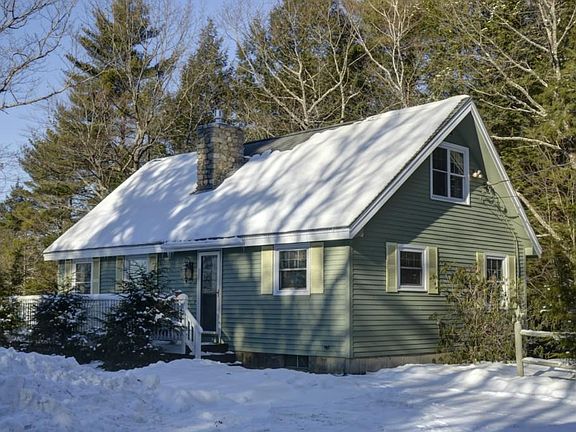 4 season home with secluded, private 2 acres. Short walk to village. Beautiful views of Shawnee Peak and Mt. Washington. Features include lovely stone fireplace with new propane stove insert, 2 bedrooms, 1.5 baths, 2 car garage w/ storage above. Brandy Pond ROW-30' access w/ beach. Large deck. Room to expand. Broker Interest.