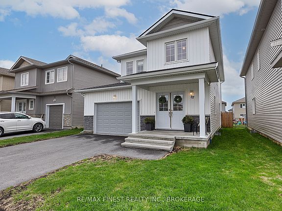 Welcome to 37 Brennan Crescent, a beautifully maintained home built in 2020, offering 3 spacious bedrooms and 2.5 bathrooms. The main level features a large, welcoming foyer with a convenient 2pc bathroom, leading into an open-concept kitchen with a generous pantry and an island with breakfast bar, all overlooking the bright living and dining areas. Upstairs, you'll find three large bedrooms, two full bathrooms, and a convenient laundry area. The primary suite boasts a walk-in closet and a luxurious 5-piece ensuite with a walk-in shower, double vanity and a tiled soaker tub surround. Step outside to enjoy a fully fenced backyard complete with a deck and gazebo, perfect for entertaining or relaxing. Located just minutes from Highway 401 and the amenities of Odessa, this move-in-ready home is waiting for you!