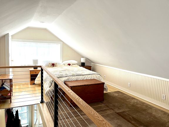 The home is on a spacious lot with beautifully landscaped yard and porch overlooking the Belfast harbor. Main floor has kitchen, dining area, TV, bathroom with shower, and a new couch that can become a bed. Upstairs has workspace area overlooking the harbor, queen bed, and storage space. This is a cozy, loft-style layout. Perfect for a traveling nurse, remote worker or couple and ideal for anyone who likes a historic space with a modern feel.