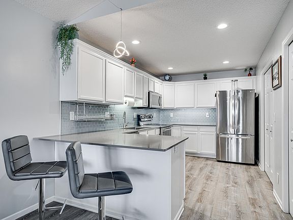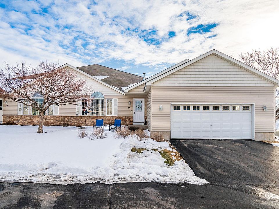 Come see this stunning 3 bedroom, 3 bathroom one level townhome with a cozy finished basement. This open floor plan has soaring vaulted ceilings to bring in plenty of natural light to this fabulous one level home. Inside the home is very modern with white cabinets, quartz counters, stainless steel appliances and plenty of neutral decor. Other updates include new carpet in the basement, fresh paint throughout, newer furnace, newer water heater, washer/dryer and a finished basement to perfect. 3 bedrooms, 3 baths, stainless steel appliances, finished lower level complete with a gas fireplace and 3rd bedroom. Do not miss this charming home that has been updated to perfection with easy access to I-94!