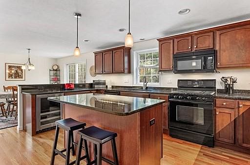 • Kit Dscrp: Flooring - Hardwood, Countertops - Stone/Granite/Solid, Breakfast Bar / Nook, Kitchen Island, Recessed Lighting, Wine Chiller, Gas Stove