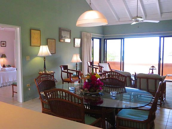 Lovely two level condo with show-stopping Buck Island and Caribbean Sea views in Candle Reef II! This 3-bedroom, 2.5 bath condo in the popular Green Cay neighborhood is adorned with soaring classic cathedral ceilings and an open layout. The first level master bedroom with bath en-suite enjoys direct access to the wrap around gallery that looks out to Buck Island. At the top of the spiral staircase you will find two spacious guest bedrooms that flank the full guest bath. Large windows with traditional wood plantation style shutters enhance the room and allow natural light and the trade-winds to breeze right through! The greatroom is open and airy with year-round trade winds! There is a natural flow between the kitchen, dining area, comfy living area and outdoor living space. The kitchen has ample storage, new refrigerator and dishwasher along with a smart layout ideal for entertaining. The condo is beautifully maintained - it is crisp and immaculate, ready for its new owners! The complex has a generator and owners are permitted to have one cat (no other pets allowed). Candle Reef is a serene, lovely place to live with a private community feel set on a white sand beach with gentle lapping waves. Green Cay has smooth paved roads and is within easy reach of all you need including shopping, a marina, schools, historic Christiansted town and more. Quarterly Condo fee includes: * Pool maintenance * Landscaping * Insurance including windstorm and excluding furniture and personal contents * Reverse Osmosis water purification * Generator * Sewage treatment * Manager lives on premises for any issues that may arise. Their salary is included in the condo fee. ** Please note, no rentals are permitted at Candle Reef II*