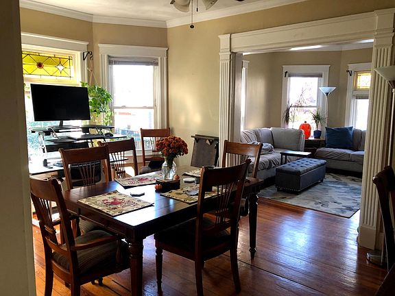 Off-street parking included. Private free laundry for your unit in the basement, along with huge private dedicated lockable storage specific to the unit. Separate front entrance from the mahogany front porch. Double-parlor living room and connected dining room with intricate moldings and bay windows in both rooms complete with stained glass accent windows in each. Very large kitchen with adjoining butler's pantry with more cabinet storage than you could ever need. Two large bedrooms, including master with two closets large enough for a king bed, second bedroom with closet large enough to easily fit a queen bed and desk. Very clean bathroom with tub and shower.