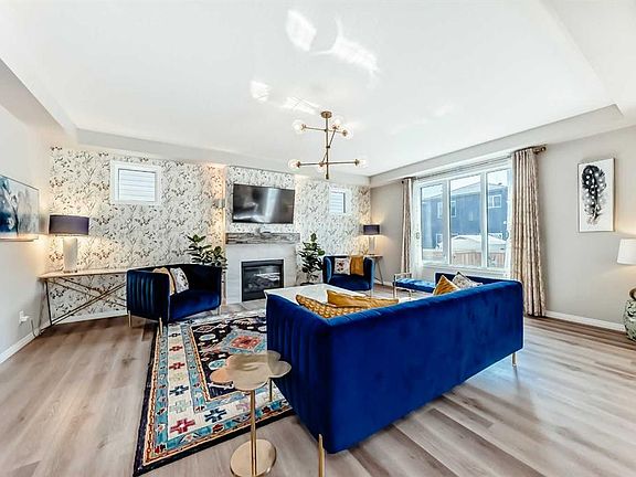 **OPEN HOUSE Sat Sept 13th from 12 noon to 2pm** Welcome to your dream home, nestled in the family-friendly community of Carrington. This exquisite two-storey 4-level split is over 2370 sq ft above grade, offering a luxurious yet comfortable living space with Three bedrooms and 2.5 baths. Situated on a north-facing lot, with a sunny, south backyard that has sunlight all day long - this house is steps from walking paths, green space and tranquil nature ponds. This property offers an exceptional blend of beauty and convenience. Upon entry, you are welcomed by an abundance of natural light, elegant design, upgraded lighting fixtures, 9-foot ceilings, and 8-foot doors on the main level. The living room provides a cozy gathering space with large windows, featuring custom wall papered accent walls and a contemporary gas fireplace. The kitchen is a culinary haven, equipped with upgraded/ built-in appliances, a gas range and corner, spacious walk-in pantry. This area is ideal for family gatherings and entertaining. From the dining area, step onto the huge 20 ft x 11 ft south-facing two-tiered deck—perfect for sunny-day relaxation or entertaining family and friends. On the upper level, the primary suite is exceptionally spacious, featuring an opulent ensuite with a shower enclosed in 10ml glass, a freestanding soaker tub, dual vanities, and a walk-in closet with built-in organizers. Two additional great sized bedrooms on the 3rd level share a four-piece bathroom, along with a spacious bonus room with high ceiling on the 2nd level. The unfinished lower level offers a lot of storage space and has rough-ins ready for your next, dream project. This home is sure to impress. Situated just steps from natural ponds, pathways, parks, this home also provides convenient access to the Carrington Commercial Shopping Centre, bike paths, Stoney Trail, Deerfoot Trail, and is minutes from Calgary International Airport. Book your showing today!! You won't be disappointed!
