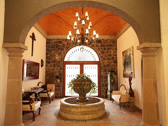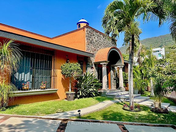 Welcome to Hacienda en la Montaña in the exclusive Club de Golf San Gaspar!Just one hour south of Mexico City, discover the perfect vacation escape or full-time residence only minutes from the City of Eternal Spring, Cuernavaca, famous for its year-round sunny weather, lush landscapes, and vibrant cultural scene the ideal backdrop for this incredible hacienda-style home. Experience timeless Mexican charm in this one-of-a-kind bungalow sitting on an expansive 17,000 sq ft lot and offering over 7,000 sq ft of living space, this home blends traditional elegance with modern comfort, fine craftsmanship, and resort-style amenities. Architectural highlights include Catalan vaulted ceilings, exposed wooden beams, beautiful stonework throughout, and a hand-carved fountain at the main entrance.Offering 4 bedrooms, 6.5 bathrooms, a great room, a formal dining room an office, TV and family rooms, a storage room, and more. the layout is designed for both relaxation and entertaining. The primary bedroom is a private retreat, complete with a walk-in closet, spa-like ensuite, and a serene terrace overlooking the landscaped gardens. The three additional bedrooms each feature their own bathroom and ample closet space. Outdoors, enjoy resort-style living: a sparkling pool, inviting jacuzzi, and breathtaking views of the surrounding mountains and golf course. A massive terrace overlooking the gardens is fully equipped perfect for alfresco dining and entertaining. The property also offers parking for up to 8 vehicles. Nestled within the exclusive San Gaspar gated community, the residence enjoys privacy, security, and direct access to the prestigious San Gaspar Golf Club. Residents of this sought-after enclave appreciate its tranquil atmosphere, manicured grounds, and sweeping views of the valley. Hacienda en la Montaña is more than a house, its a lifestyle of sun, tranquility, and leisure, all within easy reach of Mexico City.