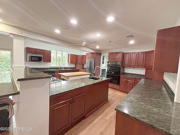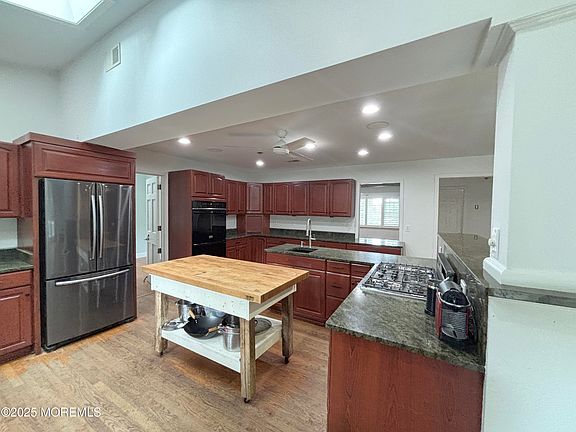 Expanded Colonial in desirable Wayside section of Ocean Township just minutes to the beach. Open floor plan with hardwood floors, plantation shutters, Anderson windows, and skylights. Chef's kitchen with granite counters and premium cabinetry opens to dining and living areas. Separate office with custom cabinetry and marble desktop. California Closets, and finished basement with half bath. 2-zone A/C, HWBB heat, gas fireplace. Fenced yard with mature landscaping for privacy, deck, patio and outdoor shower. Two-car attached garage. Close to beaches, shopping, dining, and entertainment. Excellent school district.