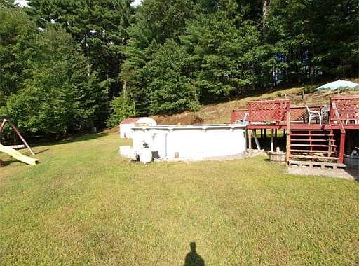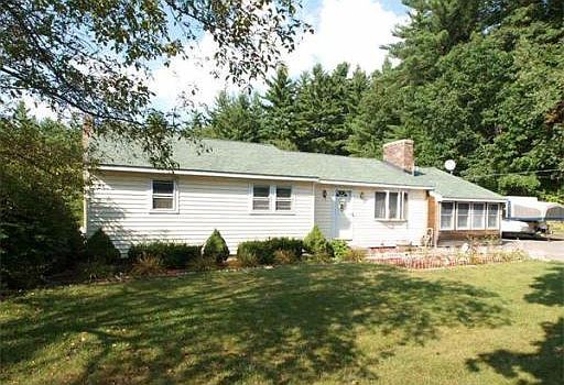 Great neighborhood setting for this surprising oversized ranch home! Sited on 1.6 private acres this home offers large rooms, 3 season porch, walk out basement with game room, above ground pool and sprawling lawns. The house has been updated to include vinyl insulated windows, vinyl siding, newer roof and heating system. The kitchen features updated cabinets, appliances and counter tops. Huge master bedroom suite added off the back offers a view of the yard, vaulted ceiling and private bath. The living room features a brick fireplace with woodstove insert. This is a great home with lots of potential!