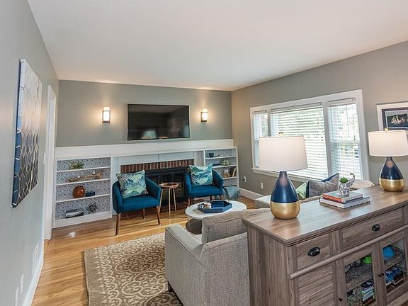 You won't want to miss this charming Danvers ranch with a finished basement! Main level features a stylish living room with a large window, brick fireplace, built-in shelves, and hardwood floors. The kitchen is efficient with a built in dining nook. The sunroom has vaulted ceilings and new flooring. The 3rd bedroom can be versatile - as a bedroom, home office / remote learning space or dining room. The other 2 generously sized bedrooms are beautiful with their hardwoods floors and closet space. The full bath is completely updated and modern. Finished lower level offers ample space - perfect as a family room, exercise, game room - whatever suites your needs! You'll love the large, level, fenced in yard, complete with a beautiful deck & patio perfect for the fall! 1 car garage, Central AC, New Roof in 2020, updated windows, gas heat conversion - this home is the total package! Conveniently located to downtown, area parks, schools and the Danvers Rail Trail!