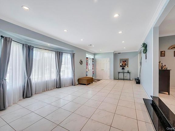 Welcome to 37 Columbine Lane, a beautifully updated 5-bedroom, 2.5-bath Colonial located in a quiet, sidewalk-lined neighborhood within the Kings Park School District. Boasting impressive curb appeal, this stately home welcomes you with a charming covered front porch and a newly paved double-wide driveway leading to a spacious 2-car garage. Step inside to find a bright and open interior with recessed lighting, neutral tones, and gleaming tile floors throughout the main level. The oversized formal living room is flooded with natural light from the large bay window and flows seamlessly into a generous formal dining space, perfect for hosting gatherings. The sleek, modern chefs kitchen is equipped with granite countertops, custom cabinetry, a 6-burner gas cooktop and double electric oven, offering ample counter and storage space. Just off the kitchen, a cozy den provides an ideal spot to relax or entertain, with easy access to the backyard through sliding glass doors. Upstairs, you'll find five generously sized bedrooms, including a spacious primary suite complete with a walk-in closet and private en-suite bath. All bathrooms have been tastefully updated with elegant tilework and modern fixtures. Downstairs, the basement with outside entrance provides additional storage or potential future living space. The fully fenced backyard is a private oasis, featuring a 22' x 52' custom paver patio that spans nearly the width of the home—perfect for outdoor dining, lounging, and entertaining. Mature privacy hedges surround the property, offering a serene and secluded feel, with plenty of grassy lawn space for play or a future pool. Additional highlights include central air conditioning, new roof and chimney (2020), new in-ground sprinklers (2024), new driveway, walkway, patio, porch and stoop (2024), radiant floors, gas heating, and a laundry area conveniently located on the main level. Located just minutes from town, schools, parks, and beaches, this move-in ready Colonial offers an incredible combination of space, updates, and outdoor living. Don’t miss the opportunity to make this beautiful house your home!