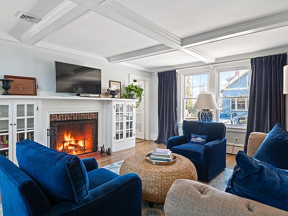 - Features: Built-in Features, Coffered Ceiling(s), Wood Burning Fireplace
