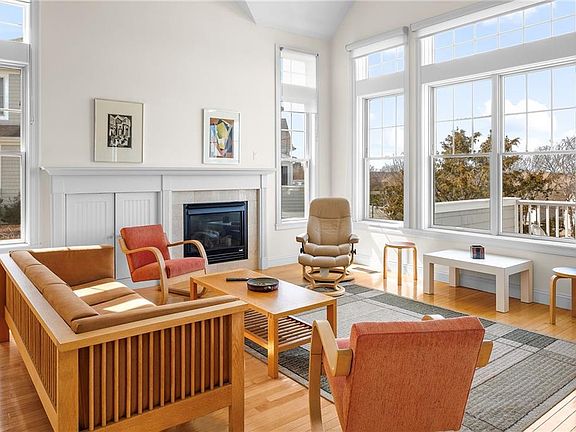 This beautifully designed, sun filled end townhome offers a perfect blend of comfort and style, featuring ideal south west facing windows bringing in an abundant of natural light and stunning sunsets. Two story living room with dramatic windows over looking Mount Hope Bay captures your attention the minute you step inside. The open concept living, dining and kitchen create a seamless flow for entertaining and everyday living. The home offers two primary suites, one on each floor and both with spacious ensuite baths and closets; the main level den, laundry and garage access make it easy to live on one floor if that is your current or future goal. Finished lower walkout offers a spacious gathering space with wet bar, guest bedroom, full bath and access to stone patio for overflow guests or live in help. Conveniently located in walking distance to the clubhouse and pool. Amenities include clubhouse, heated outdoor pool, fitness center, gathering spaces, social events including organized pickle ball, model yacht sailing regattas and weekly socials just to name a few. Conveniently located less than a mile from RT 24 with quick access to Bristol, Newport, Providence, Cape and the islands. Minutes from new commuter line with access to south station, Boston. Easy to show and ready for summer occupancy.