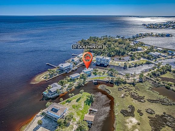 This 5-parcel waterfront “estate” offers so much more than just a home - it offers the ultimate coastal lifestyle! With calm bay waters seen from every room in the home, breathtaking sunrises and sunsets, views of abundant sea life and birds and your own private floating dock with a 10,000 lb. boatlift to enjoy immediate access to Apalachee Bay and the Gulf you will feel like you are on vacation every day. Located on a private road on Live Oak Island, south of Tallahassee, this move-in-ready 2-story home features an open layout with high ceilings, fireplace, custom window treatments and light fixtures and a spacious first-floor guest suite with an ensuite bath and walk-in closet. Upstairs you will find an open living, dining and kitchen area with a cozy fireplace and a separate seating area, spacious primary bedroom with an ensuite and guest rooms, another full baths and an abundance of oversized windows that invite natural light and stunning views. Off the living area is an open deck with gorgeous views perfect for enjoying your morning coffee or afternoon cocktails. The wrap-around deck on the top level allows you to enjoy the scenery from every angle. Located next door to the home is a large, elevated workshop/storage building with a magnificent open water view from the spacious covered deck, ideal for entertaining and relaxing. Also included is a vacant parcel with a floating dock to the west of the home which, with a variance, may possibly be used to build another home, and two additional waterfront parcels across the street, one with a floating dock and fish cleaning table, perfect to launch your canoes, kayaks, paddleboards, jet skis or anything else you would enjoy having unlimited access to the Bay and Gulf. The owner has replaced the seawalls and has made many upgrades to the home and adjoining parcels. This is truly a unique find of extraordinary value given the amount of waterfront property that is included, the astonishing views and the craftmanship of this lovely home. The owner is leaving all appliances and the ice machine with the sale of the home and is open to discussions about selling the furnishings.