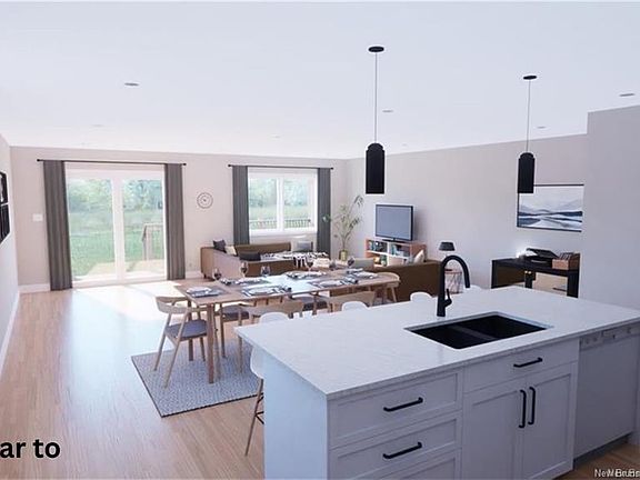 Welcome to this stunning 2-level, 2,125 sq ft new-build townhouse—designed with style, space, and modern living in mind. Step into an impressive open-concept main floor kitchen, dining, and living area. The kitchen features sleek quartz countertops, a large island to sit at, and ample cabinetry, creating the perfect space for cooking and entertaining. From the living area, patio doors lead to a large back deck with a privacy fence, ideal for outdoor dining or relaxing. A convenient half bath and an oversized single car garage complete this well-planned main level, built on a low-maintenance slab foundation. Upstairs, the large primary suite is a true retreat with a beautifully tiled shower, double sinks, walk-in closet, and a separate toilet space. Two additional bedrooms—each with their own walk-in closets—offer plenty of room for family, guests, or a home office. A second full bathroom and a designated laundry area rounds out the upper level, giving you 2.5 baths in total. Bright, spacious, and thoughtfully crafted, this townhouse combines modern finishes with exceptional functionality, making it an ideal place to call home. *Under construction, expected completion date April 2026