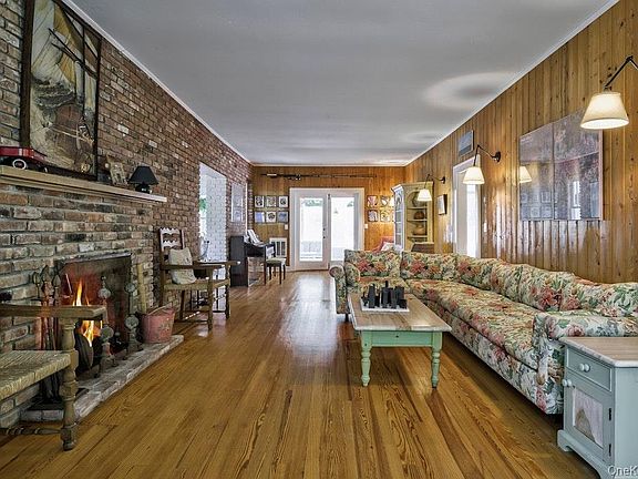 With its exposed brick, original cabinetry, and handcrafted wood accents throughout, 37 Duneway is the kind of place that feels like a page out of a novel - nostalgic, grounded, and full of soul. Step into a massive living room with original hardwood floors, wood-burning fireplace, and cedar paneling, flooded with natural light from every angle. The kitchen has been lovingly updated with new appliances, a six-burner gas stove, and new windows, while still preserving the warmth and craftsmanship of the home’s original build. Formal dining feels timeless beneath the soft glow of a Japanese grasscloth-wrapped fixture, surrounded by vintage charm.