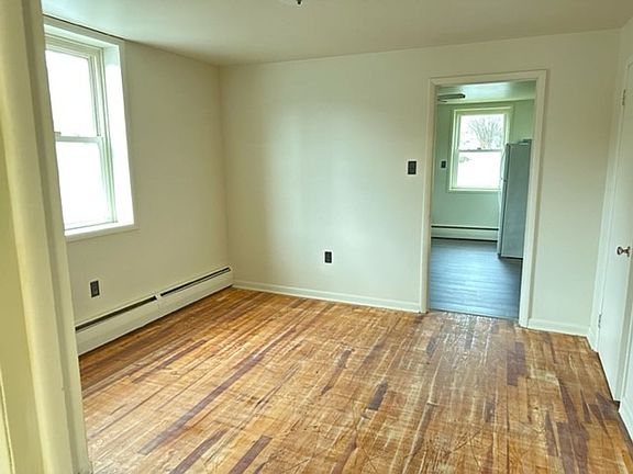 First floor spacious 2 bedroom 1 bath apartment with a 1 car Garage plus and additional off street parking space. Hardwood flooring, Eat in kitchen, 2 bedroom an 1 bath finsh of this unit. Close topublic parks and swimming pool. Included in rent is oil heat, snow, mow, water & sewer. The tenant pays for electricity and trash. Individual Laundry hookups on site. Rental insurance is required. Cat allowed with extra fees. NO SMOKING! All applicants 18 and older must complete an application. Total monthly income must be 3x the rent, Credit score 600+, Good rental history, and background check required. Application(s) required before a showing.