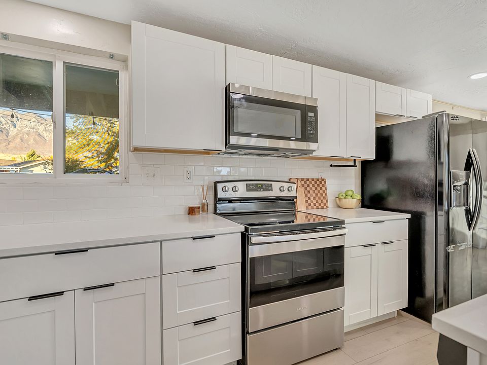 **SELLER OFFERING $5,000 in concessions towards closing costs/rate buy down** $3,000 Credit being offered for front yard to have sod laid. This home was beautifully remodeled in 2022 and a new roof installed in 2024! It's located in an excellent East Orem neighborhood! Separate entrance basement with a mother in law apartment potential. Fully equipped to be used as one. Large open concept great room with adjoining family room, dining room and kitchen featuring laminate hardwood flooring throughout. White cabinetry, subway tile backsplash, stainless steel appliances, farmhouse sink, black hardware, and recessed lighting complete the modern look. Stylish bathrooms with custom tile, striking lighting and fixtures, and a neutral color scheme. Fresh exterior paint with carport and RV parking, plus a large backyard with covered patio! Square footage figures are provided as a courtesy estimate only and were obtained from previous owner's measurement. Buyer is advised to obtain an independent measurement.