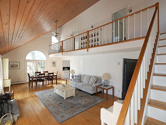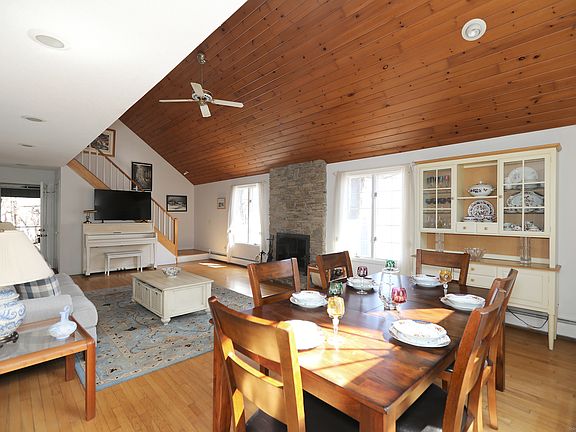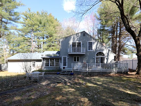 Come and see this beautiful home in Simsbury and you're never going to want to leave. The soaring ceilings are so impressive...the private, landscaped lot is so peaceful you can sit for hours... Although the town records have this contemporary listed as a 2 bedroom, this lovely home actually contains a first floor primary suite, a sunroom/office and eat-in kitchen, and an open dining/living room space on the first floor and 2 bedrooms (one with a Juliet balcony) and a Jack and Jill bath upstairs. There are hardwood floors and a stunning wooden ceiling in the main living space. The backyard was professionally landscaped and could easily be brought back to its former glory. There is an above ground pool set in the ground in the back yard that has a lot of potential. The deck needs a bit of attention, but could easily become the shining star of the whole house in the lovely NE weather. While this home is priced to take these things into account, the Seller is also willing to entertain a credit at close for the right offer. Simsbury is THE place to be, and this house has the potential to be a SHOWSTOPPER; the fixes are primarily cosmetic! The yard also backs up to the Farmington Rails to Trails, so there is undeveloped space. Convenient to everything but nestled back off the road, this home is not to be missed!