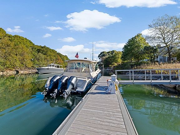 Boating enthusiasts, welcome to the perfect blend of coastal luxury meets nautical lifestyle with this exclusive Fiddler's Cove home. Private, deep-water dock for boats up to 60’ and direct, open-water access to Buzzards Bay. Over 3800 sq' of living space. Main level showcases understated elegance of open concept kitchen, dining and living areas designed to capture water views, complete with large island, custom built ins, fireplace, wet bar, hardwood floors and recessed lighting. Also on main level, cozy den with fireplace, primary bedroom/ensuite, laundry, 1/2 bath and easy access to garage. Upstairs you'll find 2 spacious bedrooms, 3 full baths, and two versatile bonus rooms. The exterior has multiple patios overlooking water, one plumbed for gas grill and another plumbed for hot tub. Natural gas heat, 2 hot water tanks, AC, passing Title V. Built in 1985, renovated in 2006. Roof 2017. Your chance to own in one of Falmouth's most coveted coves. See virtual tour attached.