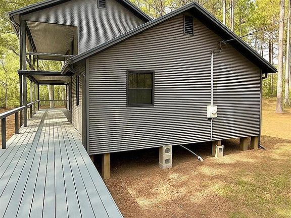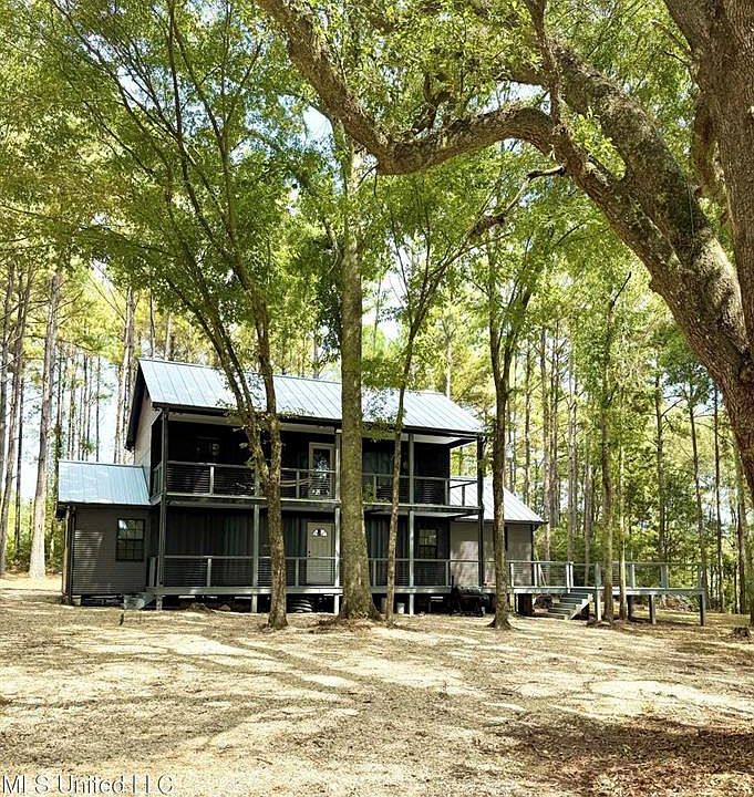 Welcome to 37 Fortenberry Road TT, a custom barndominium set on nearly 50 acres of mixed pasture and woods. Built in December 2022, this two-story metal home offers approximately 1,800 square feet of living space with a perfect blend of rustic charm and modern design. The home features pine board walls, corrugated metal ceilings, and leather-finished granite countertops, creating a warm yet durable interior. The open concept living and dining area is highlighted by natural light and an iron staircase railing, with low-maintenance laminate flooring flowing throughout. The kitchen is equipped with stainless steel appliances, ample cabinet storage, and rustic shelving, while the cozy living space opens to both front and back porches. Two spacious bedrooms with closet space are located upstairs, along with access to a balcony, while downstairs offers two full bathrooms with a vanity and fixtures. Storage is abundant with cubby spaces on both floors, attic space, and a convenient utility room for laundry. Outside, the property boasts 30-35 acres of clear pasture with the balance in woods, for livestock, recreation, or hunting. A pond site is already in place and ready for water. Additional features include Starlink internet, city water, septic, all-electric systems, and exterior security lighting. Whether you're seeking a private retreat or a full-time residence, this barndominium delivers a lifestyle of comfort and space in a beautiful natural setting.