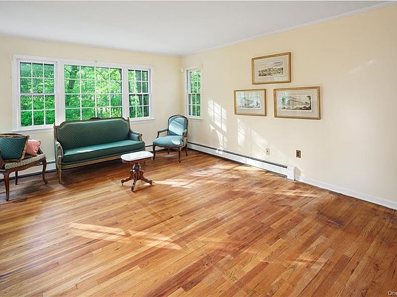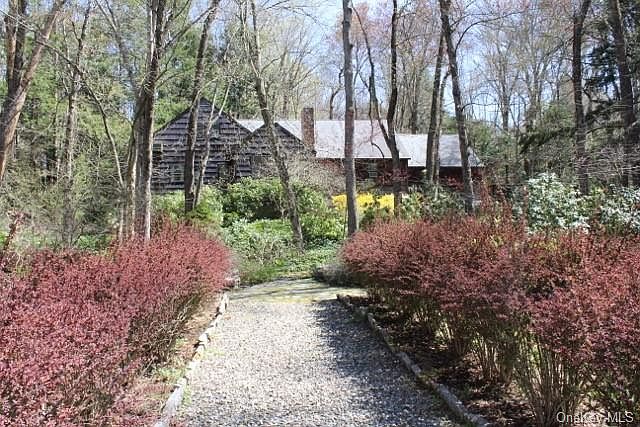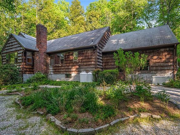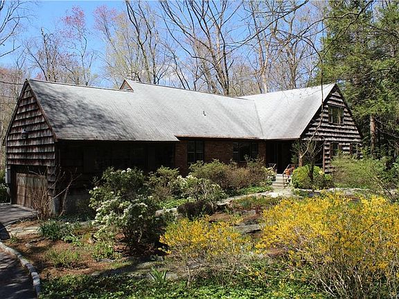 A wonderful opportunity to pour in the love and make this peaceful retreat your own. Sprawling home on a quiet cul de sac. Country charm with today's in-demand floor plan featuring bedrooms on the main level, and large sunny studio with full bath on the second. Generously-sized living room w/fireplace, dining room and kitchen all overlooking the evergreen property. Cozy den off the kitchen and mudroom. Spacious finished lower level opens to the flowering woodland property protected by deer fencing. Hardwood floors throughout. Flowering gardens created by the original owner, a master gardener. Enjoy walking two enchanting acres with stone walking paths throughout perennial gardens, stone bridge, reflecting pond, stream, and specimen trees. Multiple varieties of daffodils, ferns, primrose, astilbe, mountain laurel, rhododendron and more. Walking/biking neighborhood. Close to Bedford and Stamford. Convenient commuting location to Stamford Train Station. House will be sold as is.