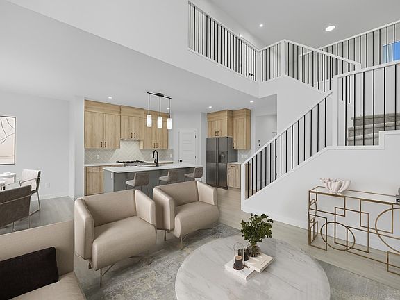 Expansive open-concept layoutDramatic great roomSpacious islandStylish hood fanWalk-through pantryFull quartz countertopsSoaring open-to-above ceilings