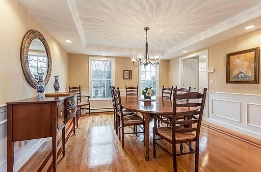 Great House, great flexibility, great location! Lovely ten room colonial set on a beautifully landscaped lot close to Newman school. This home has everything; gracious foyer, oversized living room, formal dining room with tray ceiling and cherry banded hardwood floors, sunny eat in kitchen with quartz counter tops and stainless steel appliances, fireplaced family room with skylights and sliders over looking the custom stone patio. Relax with a book in the study that features built-ins and a bay window. The second floor offers spacious rooms and versatility; with two master bedroom possibilities within the five bedrooms and three full baths. One of the master bedroom options has vaulted ceilings, enormous walk-in closet and a bathroom with whirlpool tub. If you prefer the cozier master suite; this area could be a fabulous playroom or guest suite with a separate staircase! The lower level rec-room, new central AC units, mudroom, first floor laundry, 2-car garage completes your wish list!